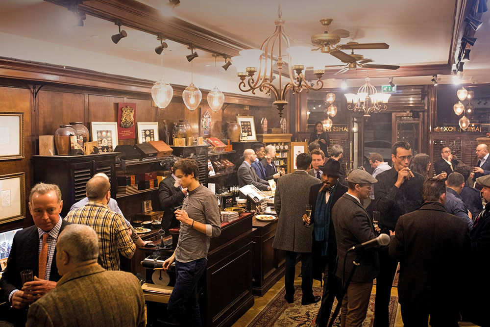 Četvrt St. James’s, omeđena četirima važnim londonskim točkama – Trafalgar Squareom, Piccadilly Circusom, Green Parkom i Buckinghamskom palačom, mjesto je gdje su stjecana i gubljena bogatstva aristokrata, gdje su Lady Caroline Lamb i Lord Byron skandalizirali London, a Beau Brummell odjeću pretvorio u haute coiture, ali i svojevrsni starinski šoping centar čije ulice krase lijepi izlozi trgovina s ekspertno ručno rađenom robom, čime profinjenome kupcu nudi doživljaj bez premca u svijetu. A James J. Fox Tobacconists jedna je od najpoznatijih među njima. Foxova priča započinje sa stanovitim Robertom Lewisom, koji je u St. James’s Streetu duhan počeo prodavati još 1787. Stotinjak godina poslije (1881.), u Dublinu je pak tvrtku osnovao James J. Fox, koji je svoju trgovinu duhanom u Londonu otvorio 1947. Ta je tvrtka 1992. kupila posao Roberta Lewisa te tako ujedinila dva najcjenjenija imena u svijetu cigara. Zanimljivo je da James J. Fox, osim svoje trgovine u St. James’s Streetu, danas vodi i odjele cigara u poznatim londonskim robnim kućama Harrods i Selfridges. Može se slobodno reći da je trgovina James J. Fox dimom ispunjen raj za ljubitelje duhana, mjesto hodočašća za aficionadose i carstvo kurioziteta za početnike u svijetu pušača cigara. Naime, kada je 2007. uvedena zabrana pušenja na svim javnim mjestima u Britaniji, neki su izmakli zakonu, pa se u trgovinama cigara još uvijek može zavaliti u fotelju i zapaliti divovsku „kubanku“ (možda čak i uz čašu viskija), sve dok ste spremni tvrditi da samo „kušate“ proizvod.
